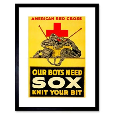 Wee Blue Coo WAR WWI RED CROSS CHARITY ADVERT KNITTED SOX SOCKS FRAMED ART PRINT B12X7709