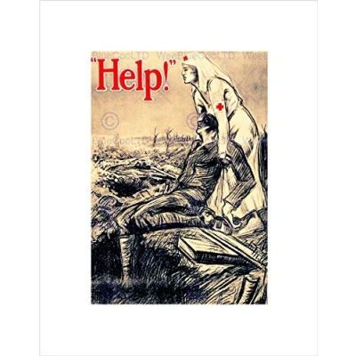 Wee Blue Coo WAR WWI UK CHARITY RED CROSS ADVERT NURSE SOLDIER FRAMED ART PRINT B12X11168