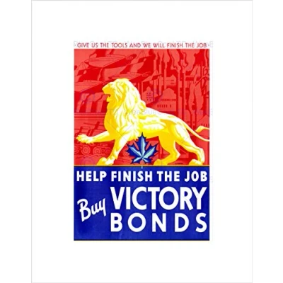 Wee Blue Coo WAR WWII CANADA LION VICTORY BOND MAPLE LEAF BLACK FRAMED ART PRINT B12X6052