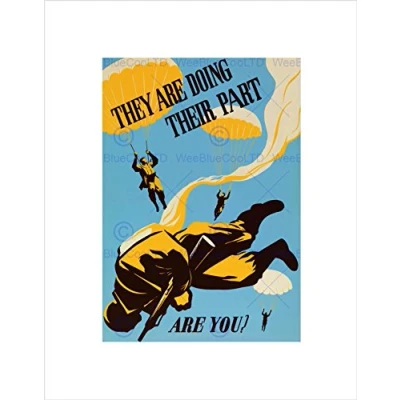 Wee Blue Coo WAR WWII DOING THEIR PART PARATROOPER SOLDIER ALLIES FRAMED ART PRINT B12X12316