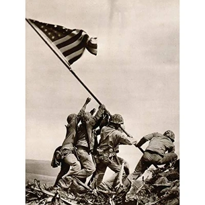 Wee Blue Coo War Wwii Iwo Jima Stars Stripes Flag Art Print Poster Wall Decor 12X16 Inch