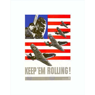 Wee Blue Coo War WWII Keep 'em Rolling Fighter Jet Engineer Wall Art Print