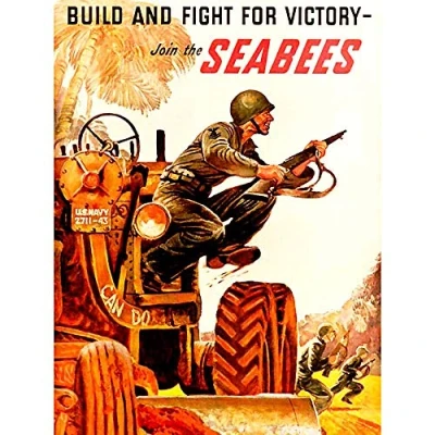 Wee Blue Coo War WWII USA Build Fight Victory Seabees Soldier Gun Tractor Art Print Poster Wall Decor 12X16 Inch