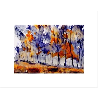 Wee BLUE Coo WATERCOLOR PAINTING ABSTRACT FOREST ORANGE FRAMED ART PRINT MOUNT B12X8103