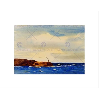 Wee BLUE Coo WATERCOLOR PAINTING FISHING CLIFF SEA FISH FRAMED ART PRINT MOUNT B12X8110