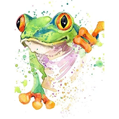 Wee Blue Coo Watercolour Frog Bright Art Print Poster Wall Decor 12X16 Inch