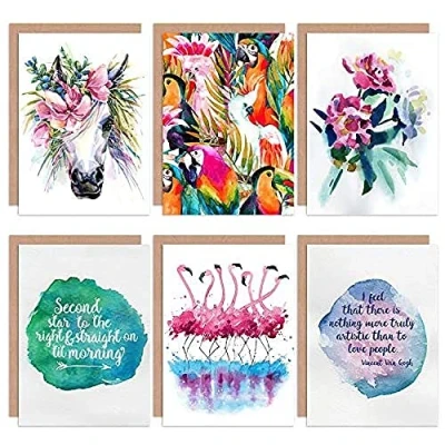 Size: Each card measures 17.5 x 12.5 cm (6.8 x 4.9 inches) Quality Cards: This card pack contains 6 blank greeting cards printed onto thick, luxurious art paper and includes a corresponding premium envelope. Assorted Designs: Our greeting cards come in a variety of unique, beautiful designs suitable for all occasions, including birthdays, anniversaries, thank you, or just because. Premium Quality: Each card is made from high-quality, durable paper that gives a luxurious feel in hand, ensuring your message stands out. Blank Inside: All our greeting cards are blank inside, providing ample space for your heartfelt handwritten messages, making each card uniquely personal.