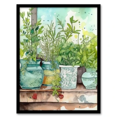 Wee Blue Coo Watercolour Windowsill Plant Pots Shelf Folk Art Painting Bright Kitchen Artwork Framed Wall Print A4