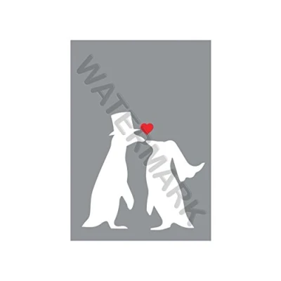 Wee Blue Coo Wedding Animal Silhouette Love Penguin Wall Art Print