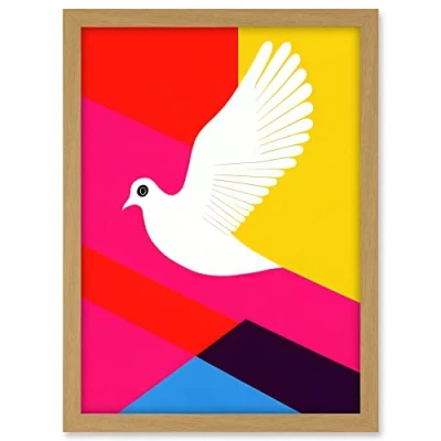 Wee Blue Coo White Peace Dove Vibrant Colourful Geometric Multi Colour Graphic Design Artwork Framed A3 Wall Art Print