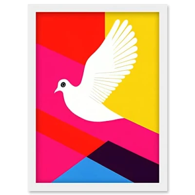 Wee Blue Coo White Peace Dove Vibrant Colourful Geometric Multi Colour Graphic Design Artwork Framed Wall Art Print A4