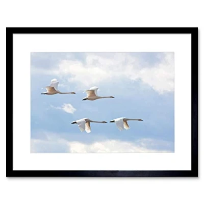 Wee Blue Coo Whooper Swan Flying Sky Art Framed Wall Print