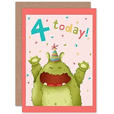 Wee Blue Coo Wild Monsters Birthday Rae 4 Today Sealed Greeting Card Plus Envelope Blank inside