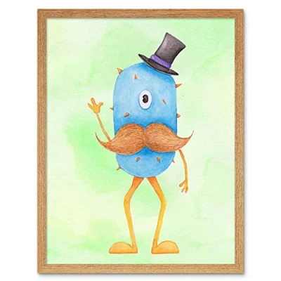 Wee Blue Coo Wild Monsters Wolfgang Moustache Top Hat Kids Art Print Framed Poster Wall Decor 12x16 inch