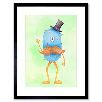 Wee Blue Coo Wild Monsters Wolfgang Moustache Top Hat Kids Artwork Framed Wall Art Print 12X16 Inch