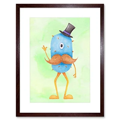 Wee Blue Coo Wild Monsters Wolfgang Moustache Top Hat Kids Artwork Framed Wall Art Print 12X16 Inch