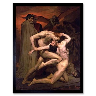 Wee Blue Coo William Adolphe Bouguereau Dante Virgil Hell Old Painting Art Print Framed Poster Wall Decor 12X16 Inch