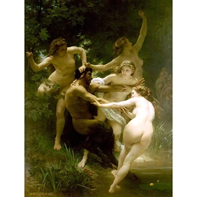 Wee Blue Coo William Adolphe Bouguereau Nymphs Satyr Old Master Painting Art Print Poster Wall Decor 12X16 Inch