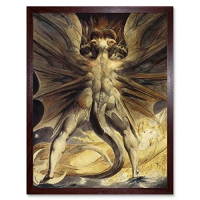 Wee Blue Coo William Blake Red Dragon Woman Clothed Sun 1805 Old Painting Art Print Framed Poster Wall Decor 12X16 Inch