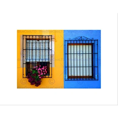 Wee BLUE Coo WINDOW FLOWERS YELLOW BLACK FRAME FRAMED ART PRINT PICTURE MOUNT B12X8860