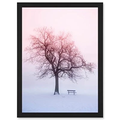 Wee Blue Coo Winter Landscape Snow Lone Tree Bench Foggy Sunrise Photo Artwork Framed Wall Art Print A4