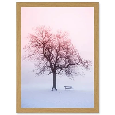 Wee Blue Coo Winter Landscape Snow Lone Tree Bench Foggy Sunrise Photo Artwork Framed Wall Art Print A4