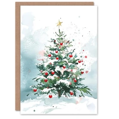 Wee Blue Coo Winter Snow Laden Decorated Tree Festive Fun Xmas Art Blank For All Christmas Card