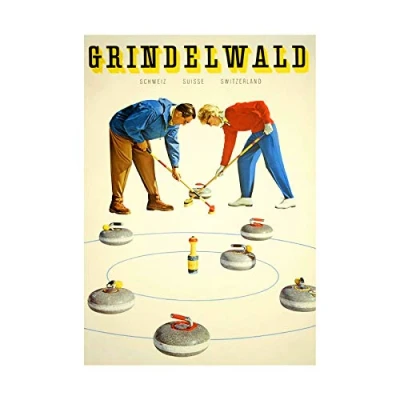 Wee Blue Coo Winter Sport Curling Grindelwald Switzerland Picture Wall Art Print