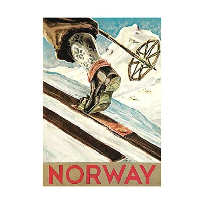 Wee Blue Coo Winter Sport Norway Ski Skiing Skiier Snow Cold Picture Wall Art Print