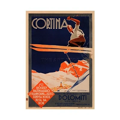 Wee Blue Coo Winter Sport Skiing Cortina Italy Alpine Ad Picture Wall Art Print