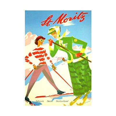 Wee Blue Coo Winter Sport St Moritz Switzerland Skiing Alpine Picture Wall Art Print
