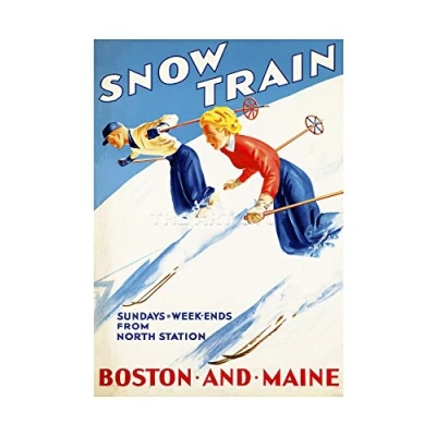 Wee Blue Coo Winter Sport Train Boston Maine Skiing Skis Picture Wall Art Print