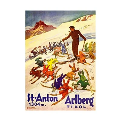 Wee Blue Coo Winter Sport Tyrol Ski Snow Rabbit Bunny Alps Picture Wall Art Print