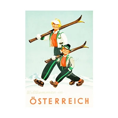 Wee Blue Coo Winter Sport Welcome Austria Ski Snow Alpine Picture Wall Art Print