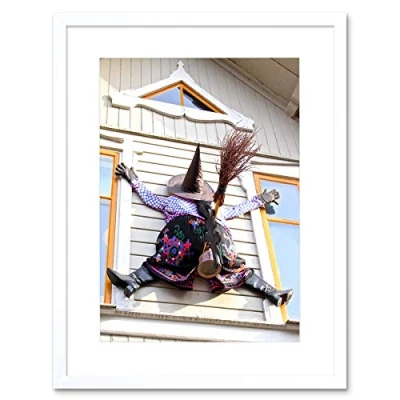Wee Blue Coo Witch Halloween House Crash Window Art Picture Framed Wall Print