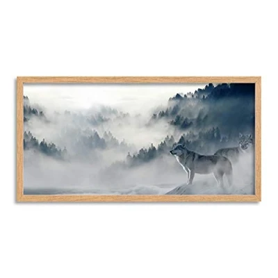 Wee Blue Coo Wolf Pair Landscape Mist Fog Long Panel Framed Wall Art Print