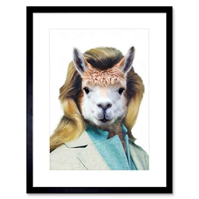 Wee Blue Coo Woman Llama Wall Art Framed Print