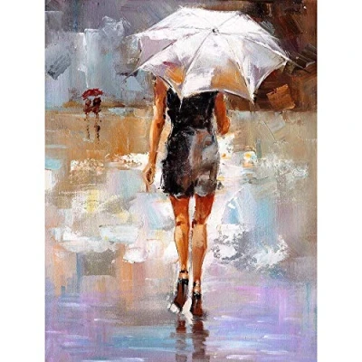 Wee Blue Coo Woman With Umbrella City Art Print Poster Wall Decor 12X16 Inch