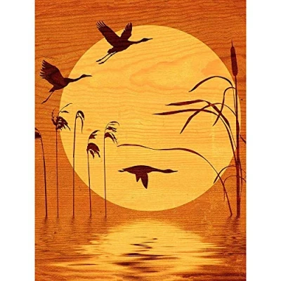 Wee Blue Coo Wood Silhouette Duck Heron Flying Sun Illustration Art Print Poster Wall Decor 12X16 Inch