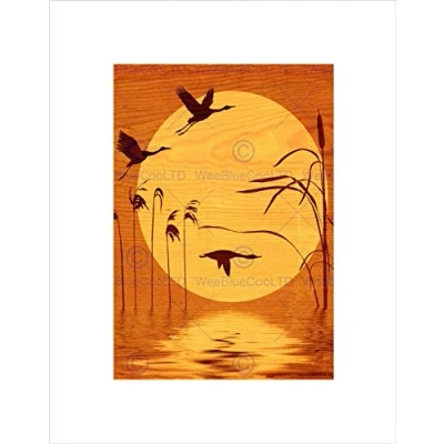 Wee Blue Coo Wood Silhouette Duck Heron Flying Sun Illustration Framed Art Print B12X9621