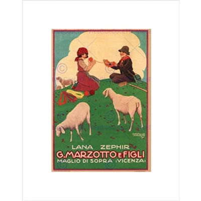 Wee Blue Coo WOOL SHEEP MARZOTTO FIGLI VICENZA ITALY VINTAGE RETRO ADVERT ART PRINT B12X636