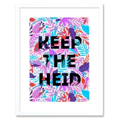Wee Blue Coo Woven Flower Typography Scotland Keep Heid Artwork Framed Wall Art Print 12X16 Inch