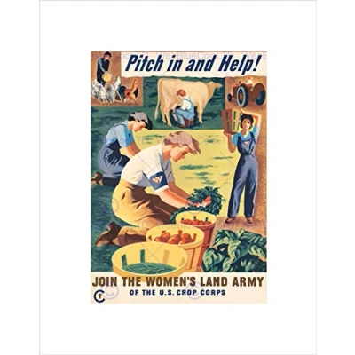 Wee Blue Coo Wwii War Pitch In Farm Vegetables Women Land Army Wall Art Print
