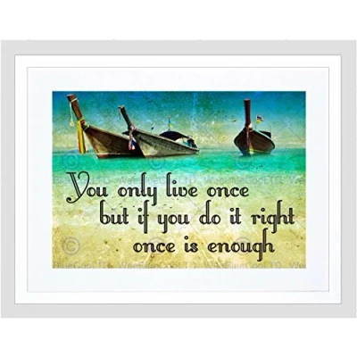 Wee Blue Coo Yolo You Only Live Once Do It Right Boats Quote Typography Art Framed Wall Print