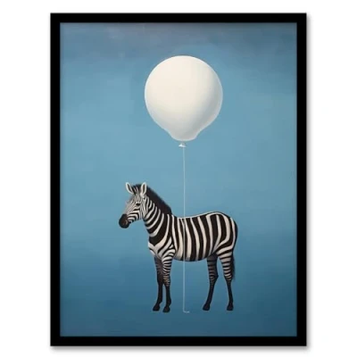 Wee Blue Coo Zebra Party For One Animal Striped Fun Artwork Framed Wall Art Print A4