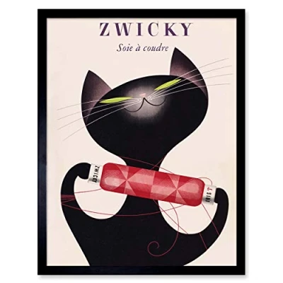 Wee Blue Coo Zwicky Cotton Switzerland Black Cat Art Print Framed Poster Wall Decor 12x16 inch