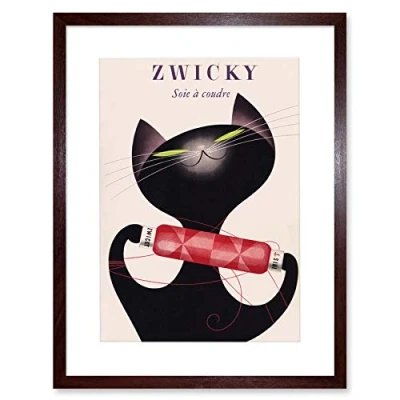 Wee Blue Coo Zwicky Cotton Switzerland Black Cat Artwork Framed Wall Art Print 12X16 Inch