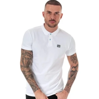 Mens Weekend Offender Barnum Polo Shirt in White.- Fold over collar.- Short sleeves.- Ribbed cuffs & collar.- 2 button placket.- Woven Weekend Offender brand patch at left chest.- Straight hem.- 100% Cotton. Machine washable.- Ref:WOSPO501