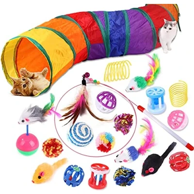 Wefine 20 Pcs Cat Toys, Kitten Toys for Indoor Cats, Tunnel Interactive Feather Teaser Wand Ball Toy Set Kitty and Cats