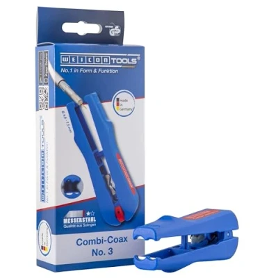 DETAILS - WEICON Combi-Coax No. 3 is robust | TÜV-tested | smooth-running | space-saving | double-sided | allows step-by-step stripping | multifunctional | insulates precisely & quickly. ERGONOMICAL SHAPE - The cable cutter lies well in the hand | allows fatigue-free working | even stripping of flexible | solid cables without damaging the inner conductors. SPECIAL TOOL - The hand pliers with a working range of 4.8 - 7.5 mm are suitable for all flexible cables | coaxial cables | NYM cables | stripping quickly | safely in workshop and industry | household. INTEGRATED SIDE CUTTERS – The wire crimper has an easily accessible side cutter up to 8 mm | requires no adjustment of the cutting depth. The blades of the tool are made of knife steel. QUALITY - 100% German quality - The crimping tools are TÜV tested with regard to occupational safety. The blades are made of high-quality knife steel - a long-lasting, first-class tool., Weight: 0.15873282864 Pounds, Manufacturer: Weicon